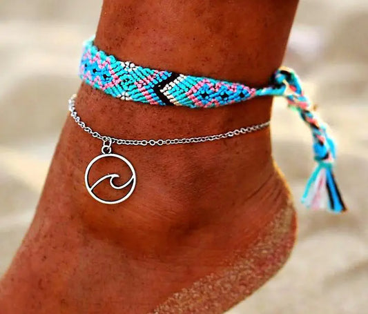 Retro Boho Anklet Turquoise Rainbow
