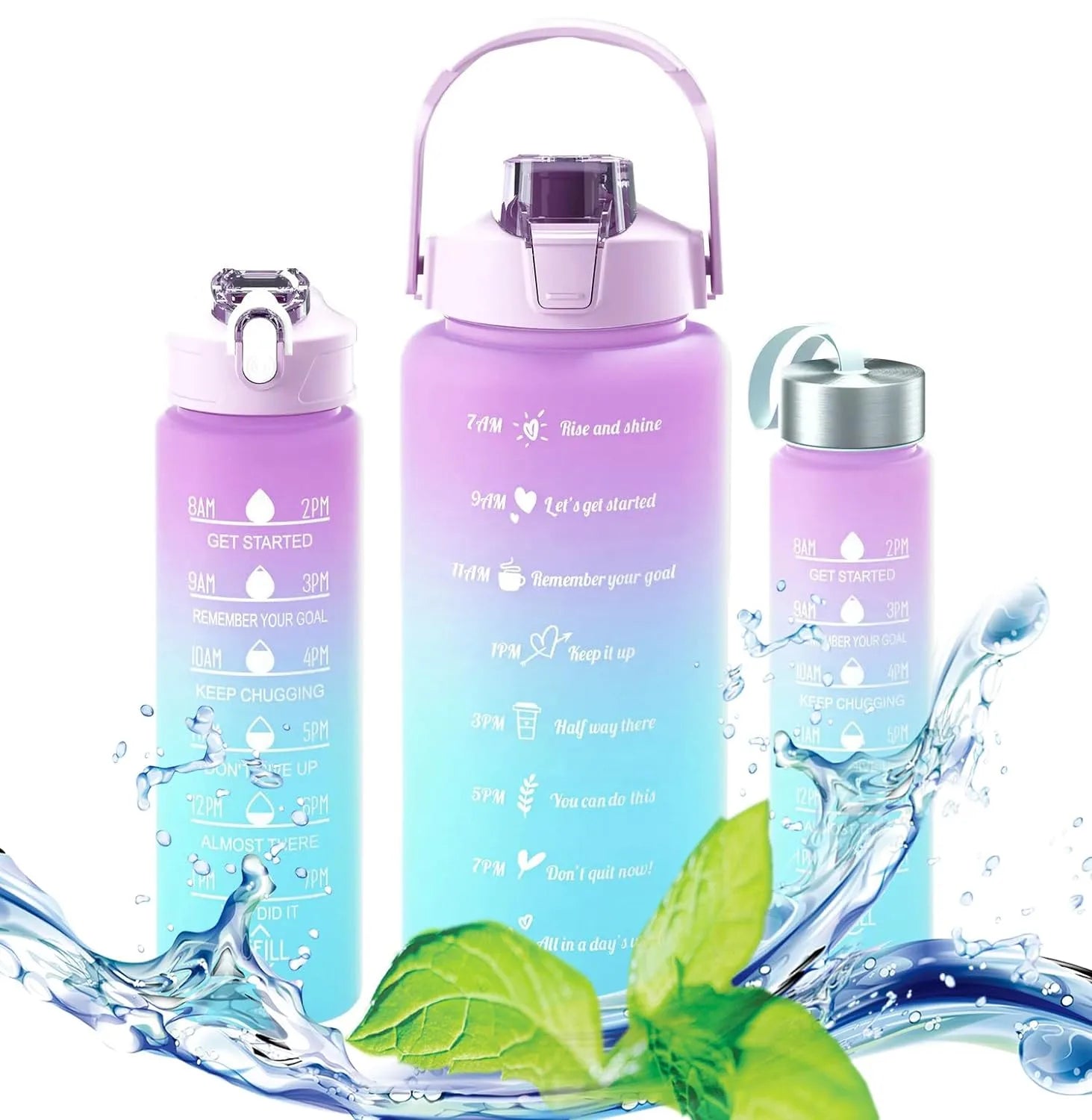 Each pack includes three bottles, each featuring a unique time marker design. These markers remind you to drink water at regular intervals, fostering consistent hydration habits and helping you achieve your hydration goals. 💧